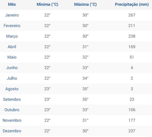 Os dados apresentados representam o comportamento da chuva e da temperatura ao longo do ano. As médias climatológicas são valores calculados a partir de uma série de dados de 30 anos observados. É possível identificar as épocas mais chuvosas/secas e quentes/frias de uma região.