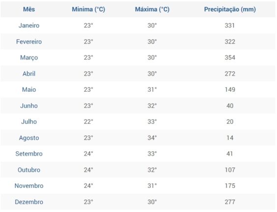 Os dados apresentados representam o comportamento da chuva e da temperatura ao longo do ano. As médias climatológicas são valores calculados a partir de uma série de dados de 30 anos observados. É possível identificar as épocas mais chuvosas/secas e quentes/frias de uma região.